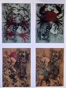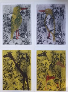 Mij boeit de herhaling van de grafische techniek, doorgaan met vorm, lijn en kleur, al drukkend ontstaan er nieuwe ideeën.